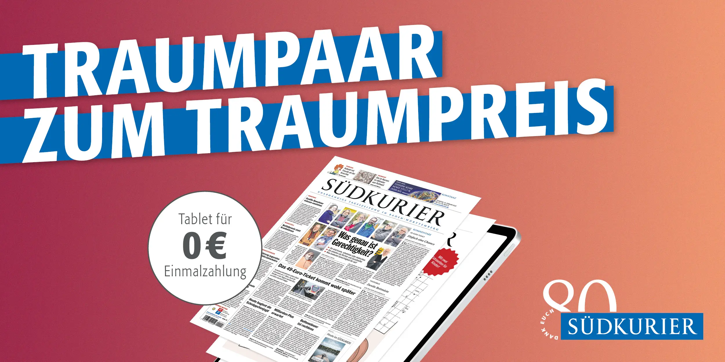 * SÜDKURIER digital inkl. Digitaler Zeitung und unbegrenztem Zugang zu allen Inhalten und Services auf SÜDKURIER Online ab 40,99 €/Monat Mindestlaufzeit 24 Monate. Das Angebot ist gültig bis zum 31.12.2025. Ein Angebot der SÜDKURIER GmbH, Medienhaus, Max-Stromeyer-Straße 178, 78467 Konstanz.